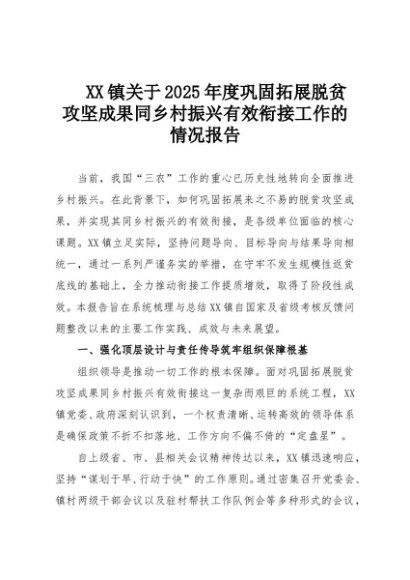 【七哥公文】2025年:XX镇关于2025年度巩固拓展脱贫攻坚成果同乡村振兴有效衔接工作的情况报告+更多免费公文+VX:QiGeGongWen2024