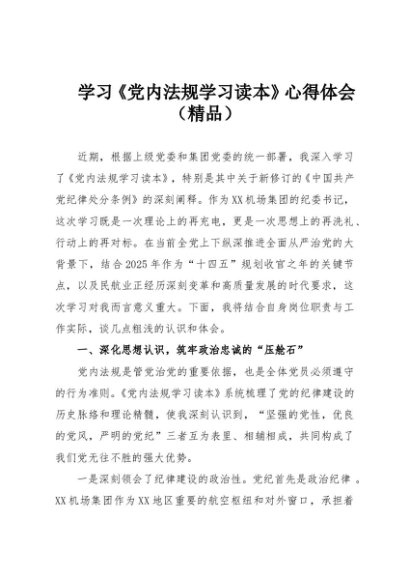 / 【七哥公文】2025年:学习《党内法规学习读本》心得体会(精品)+更多免费公文+VX:QiGeGongWen2024