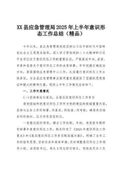 【七哥公文】2025年:XX县应急管理局2025年上半年意识形态工作总结(精品)+更多免费公文+VX:QiGeGongWen2024