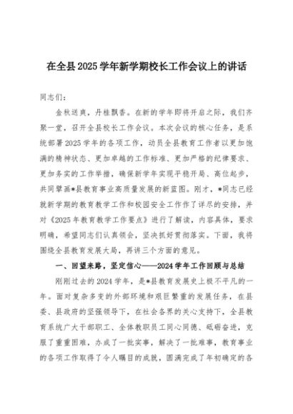 / 【七哥公文】2025年:在全县2025学年新学期校长工作会议上的讲话+更多免费公文+VX:QiGeGongWen2024