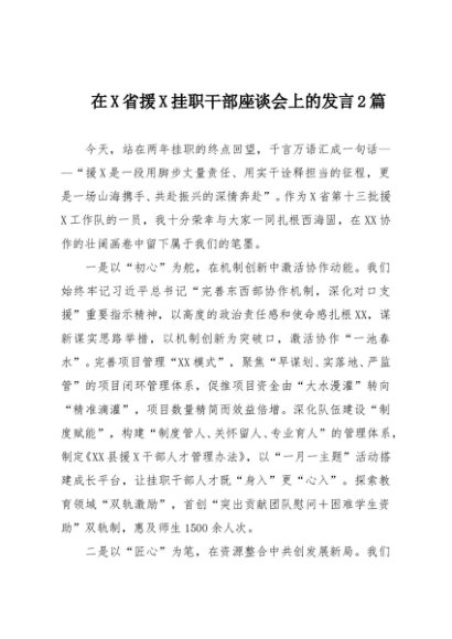 / 【七哥公文】2025年:在X省援X挂职干部座谈会上的发言2篇+更多免费公文+VX:QiGeGongWen2024