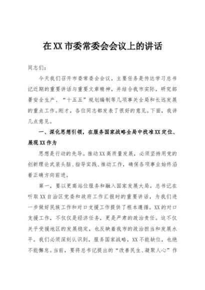 / 【七哥公文】2025年:在XX市委常委会会议上的讲话+更多免费公文+VX:QiGeGongWen2024
