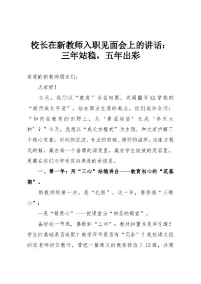 【七哥公文】2025年:校长在新教师入职见面会上的讲话:三年站稳,五年出彩+更多免费公文+VX:QiGeGongWen2024