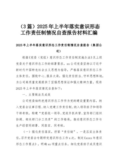【七哥公文】2025年:(3篇)2025年上半年落实意识形态工作责任制情况自查报告材料汇编+更多免费公文+VX:QiGeGongWen2024