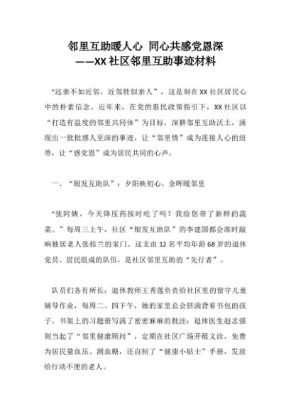 【七哥公文】2025年:邻里互助暖人心 同心共感党恩深 ——XX社区邻里互助事迹材料+更多免费公文+VX:QiGeGongWen2024