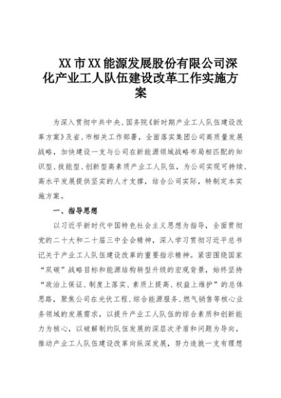 【七哥公文】2025年:XX市XX能源发展股份有限公司深化产业工人队伍建设改革工作实施方案+更多免费公文+VX:QiGeGongWen2024
