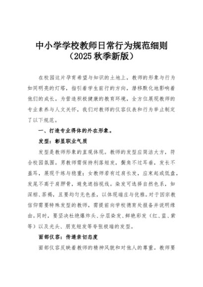 / 【七哥公文】2025年:中小学学校教师日常行为规范细则(2025秋季新版)+更多免费公文+VX:QiGeGongWen2024