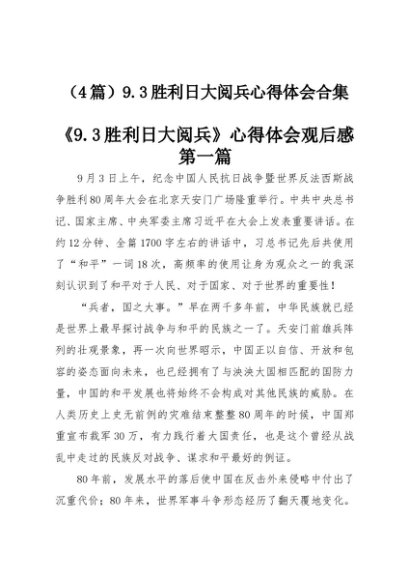 / 【七哥公文】2025年:(4篇)9.3胜利日大阅兵心得体会合集+更多免费公文+VX:QiGeGongWen2024