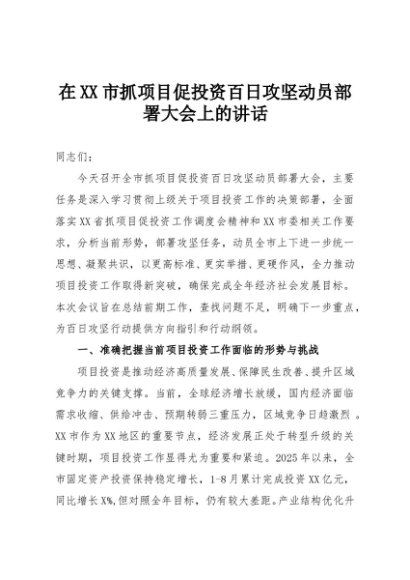 / 【七哥公文】2025年:在XX市抓项目促投资百日攻坚动员部署大会上的讲话+更多免费公文+VX:QiGeGongWen2024