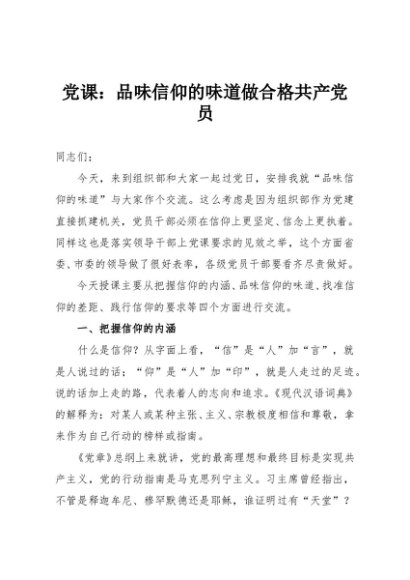 / 【七哥公文】2025年:党课:品味信仰的味道做合格共产党员+更多免费公文+VX:QiGeGongWen2024