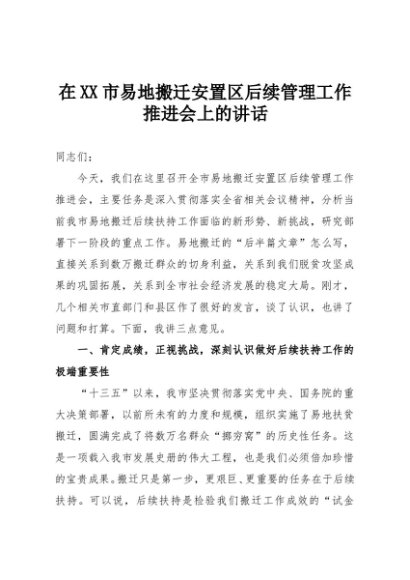 / 【七哥公文】2025年:在XX市易地搬迁安置区后续管理工作推进会上的讲话+更多免费公文+VX:QiGeGongWen2024