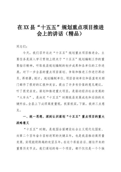 【七哥公文】2025年:在XX县“十五五”规划重点项目推进会上的讲话(精品)+更多免费公文+VX:QiGeGongWen2024