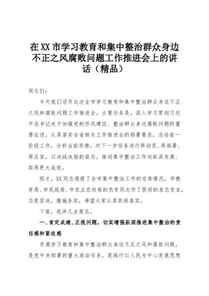 【七哥公文】2025年:在XX市学习教育和集中整治群众身边不正之风腐败问题工作推进会上的讲话(精品)+更多免费公文+VX:QiGeGongWen2024