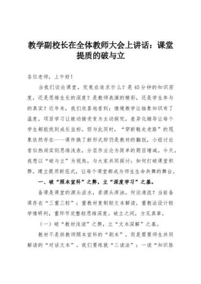 【七哥公文】2025年:教学副校长在全体教师大会上讲话:课堂提质的破与立+更多免费公文+VX:QiGeGongWen2024