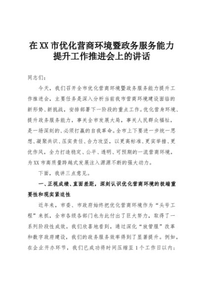 【七哥公文】2025年:在XX市优化营商环境暨政务服务能力提升工作推进会上的讲话+更多免费公文+VX:QiGeGongWen2024