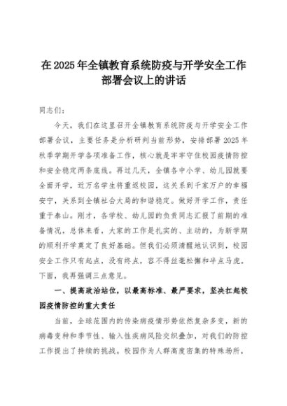 【七哥公文】2025年:在2025年全镇教育系统防疫与开学安全工作部署会议上的讲话+更多免费公文+VX:QiGeGongWen2024