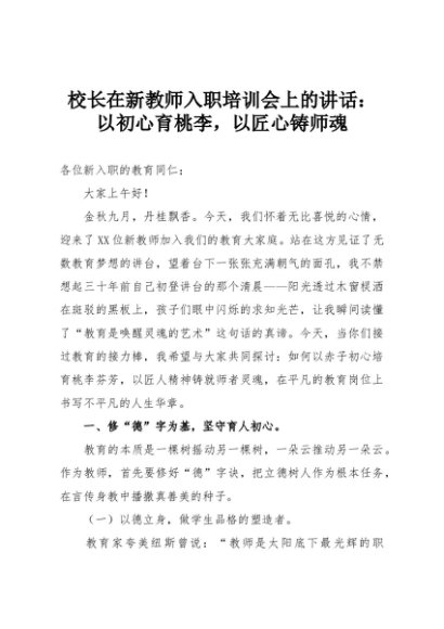 【七哥公文】2025年:校长在新教师入职培训会上的讲话:以初心育桃李,以匠心铸师魂+更多免费公文+VX:QiGeGongWen2024