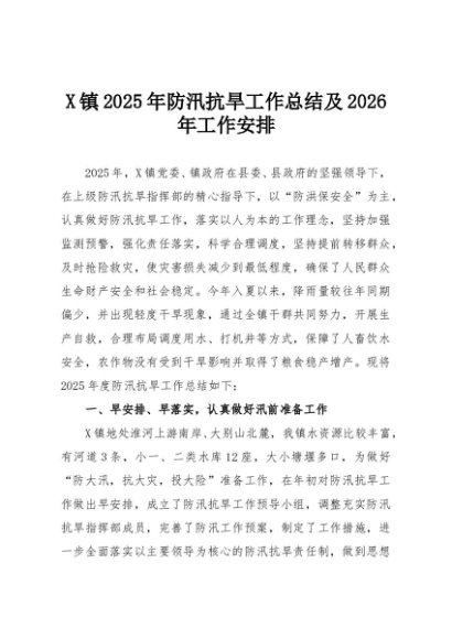 / 【七哥公文】2025年:X镇2025年防汛抗旱工作总结及2026年工作安排+更多免费公文+VX:QiGeGongWen2024