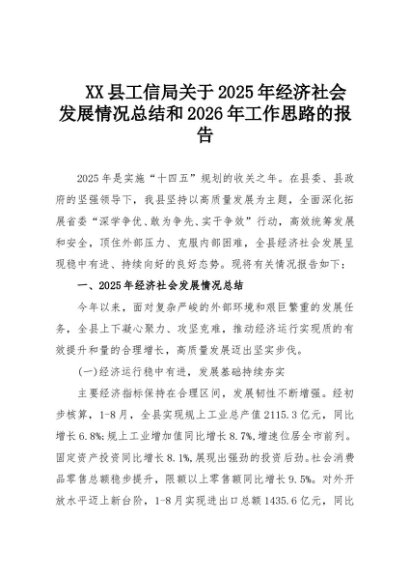 【七哥公文】2025年:XX县工信局关于2025年经济社会发展情况总结和2026年工作思路的报告+更多免费公文+VX:QiGeGongWen2024