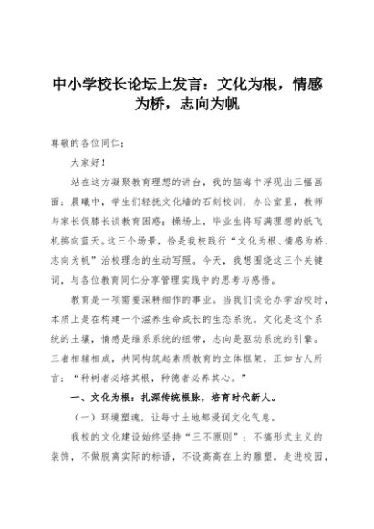 / 【七哥公文】2025年:中小学校长论坛上发言:文化为根,情感为桥,志向为帆+更多免费公文+VX:QiGeGongWen2024