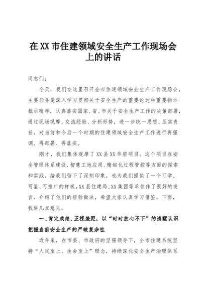 / 【七哥公文】2025年:在XX市住建领域安全生产工作现场会上的讲话+更多免费公文+VX:QiGeGongWen2024