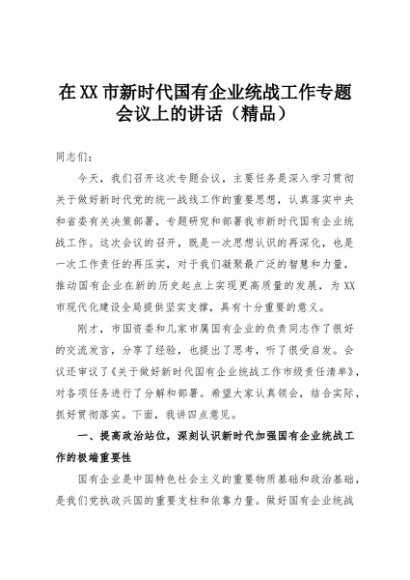【七哥公文】2025年:在XX市新时代国有企业统战工作专题会议上的讲话(精品)+更多免费公文+VX:QiGeGongWen2024