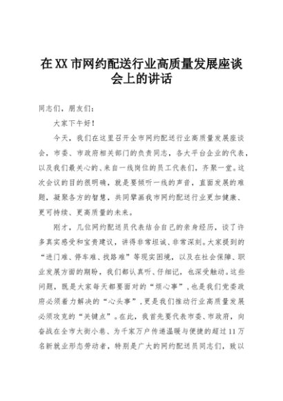/ 【七哥公文】2025年:在XX市网约配送行业高质量发展座谈会上的讲话+更多免费公文+VX:QiGeGongWen2024