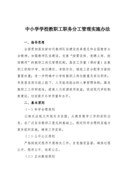 / 【七哥公文】2025年:中小学学校教职工职务分工管理实施办法+更多免费公文+VX:QiGeGongWen2024