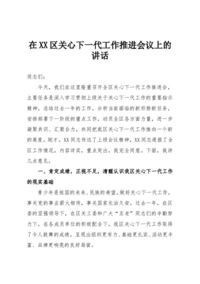 / 【七哥公文】2025年:在XX区关心下一代工作推进会议上的讲话+更多免费公文+VX:QiGeGongWen2024