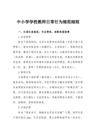 【七哥公文】2025年:中小学学校教师日常行为规范细则+更多免费公文+VX:QiGeGongWen2024