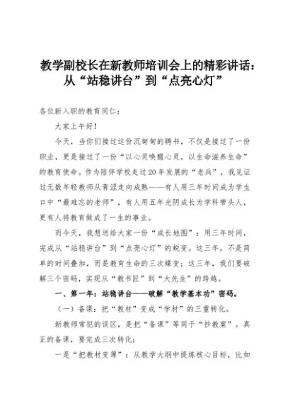 【七哥公文】2025年:教学副校长在新教师培训会上的精彩讲话:从“站稳讲台”到“点亮心灯”+更多免费公文+VX:QiGeGongWen2024