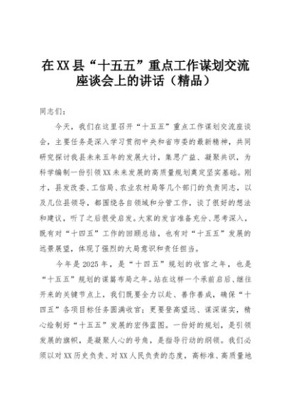 【七哥公文】2025年:在XX县“十五五”重点工作谋划交流座谈会上的讲话(精品)+更多免费公文+VX:QiGeGongWen2024