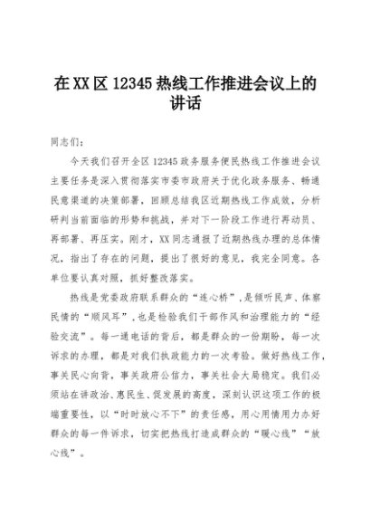 / 【七哥公文】2025年:在XX区12345热线工作推进会议上的讲话+更多免费公文+VX:QiGeGongWen2024