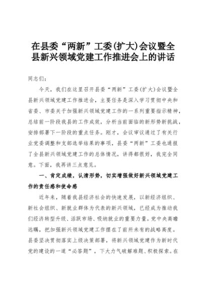 【七哥公文】2025年:在县委“两新”工委(扩大)会议暨全县新兴领域党建工作推进会上的讲话+更多免费公文+VX:QiGeGongWen2024