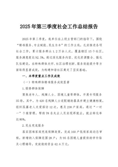 / 【七哥公文】2025年:2025年第三季度社会工作总结报告+更多免费公文+VX:QiGeGongWen2024
