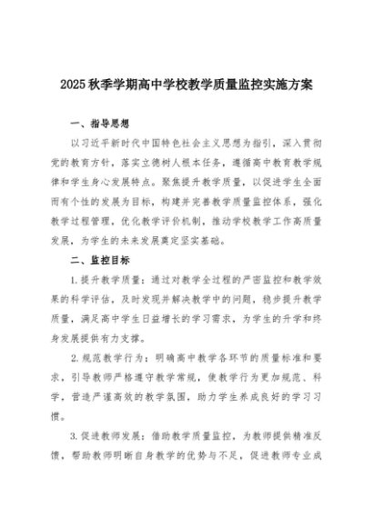 / 【七哥公文】2025年:2025秋季学期高中学校教学质量监控实施方案+更多免费公文+VX:QiGeGongWen2024