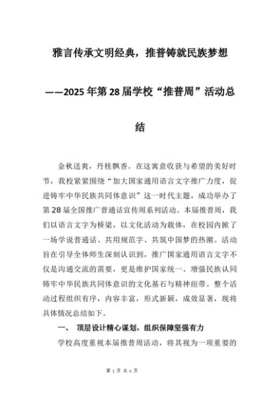 【七哥公文】2025年:2025年第28届学校“推普周”活动总结:雅言传承文明经典,推普铸就民族梦想+更多免费公文+VX:QiGeGongWen2024