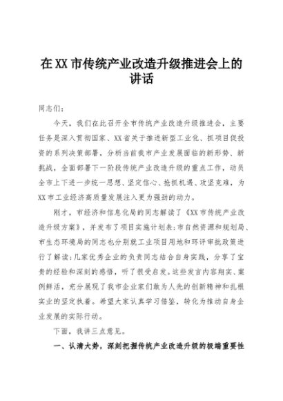 / 【七哥公文】2025年:在XX市传统产业改造升级推进会上的讲话+更多免费公文+VX:QiGeGongWen2024