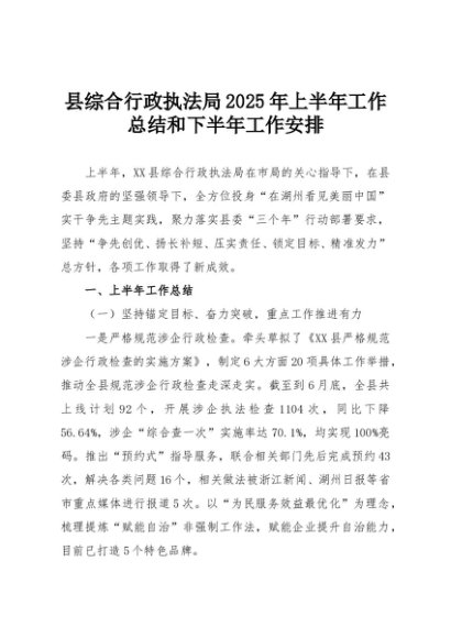 【七哥公文】2025年:县综合行政执法局2025年上半年工作总结和下半年工作安排+更多免费公文+VX:QiGeGongWen2024