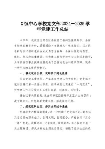 / 【七哥公文】2025年:X镇中心学校党支部2024-2025学年党建工作总结+更多免费公文+VX:QiGeGongWen2024