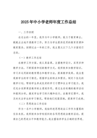 【七哥公文】2025年:2025年中小学老师年度工作总结+更多免费公文+VX:QiGeGongWen2024