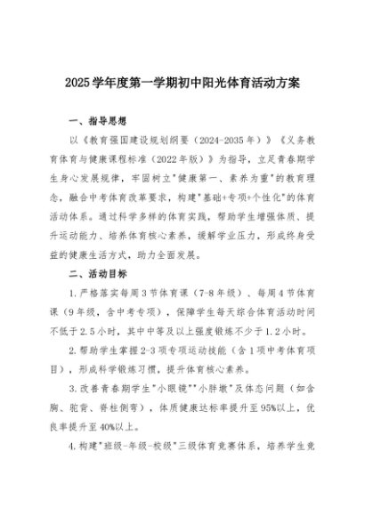 【七哥公文】2025年:2025学年度第一学期初中阳光体育活动方案+更多免费公文+VX:QiGeGongWen2024