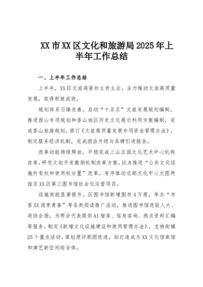 / 【七哥公文】2025年:XX市XX区文化和旅游局2025年上半年工作总结+更多免费公文+VX:QiGeGongWen2024