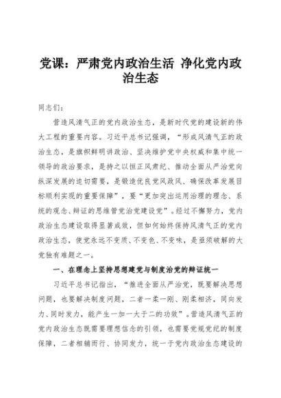 【七哥公文】2025年:党课:严肃党内政治生活 净化党内政治生态+更多免费公文+VX:QiGeGongWen2024