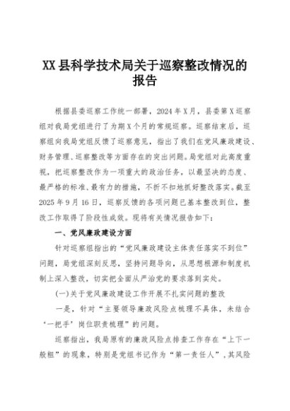 / 【七哥公文】2025年:XX县科学技术局关于巡察整改情况的报告+更多免费公文+VX:QiGeGongWen2024
