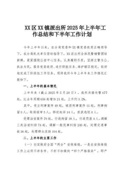 【七哥公文】2025年:XX区XX镇派出所2025年上半年工作总结和下半年工作计划+更多免费公文+VX:QiGeGongWen2024