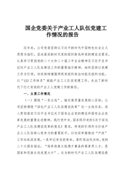 / 【七哥公文】2025年:国企党委关于产业工人队伍党建工作情况的报告+更多免费公文+VX:QiGeGongWen2024