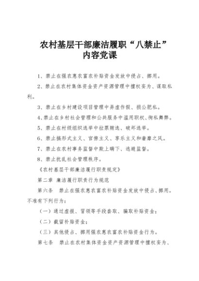 / 【七哥公文】2025年:农村基层干部廉洁履职“八禁止”内容党课+更多免费公文+VX:QiGeGongWen2024