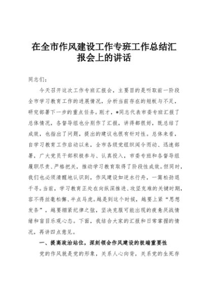 / 【七哥公文】2025年:在全市作风建设工作专班工作总结汇报会上的讲话+更多免费公文+VX:QiGeGongWen2024