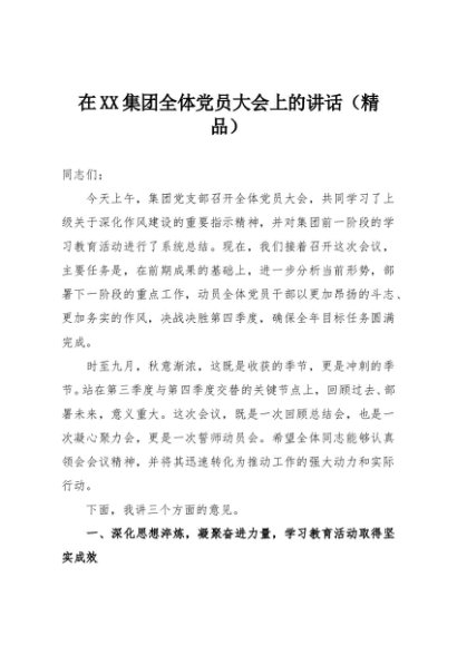 / 【七哥公文】2025年:在XX集团全体党员大会上的讲话(精品)+更多免费公文+VX:QiGeGongWen2024